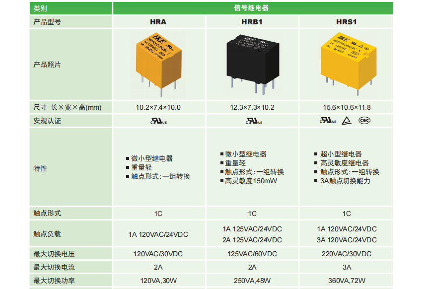 信号继电器 HRA 特性: ■微小型继电器 ■重量轻 ■触点形式:一组转换